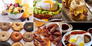We have all sorts of Breakfast Packages: bread, bagels, eggs, bacon, sausage, fruits, OJ, Yogurt, avocado, donuts, cereals